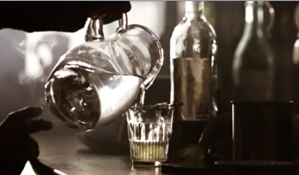 Absinthe si síce zalieval vodou, ale do akéhosi zvláštneho pohára bez stopky. A následne to kopol do seba naraz